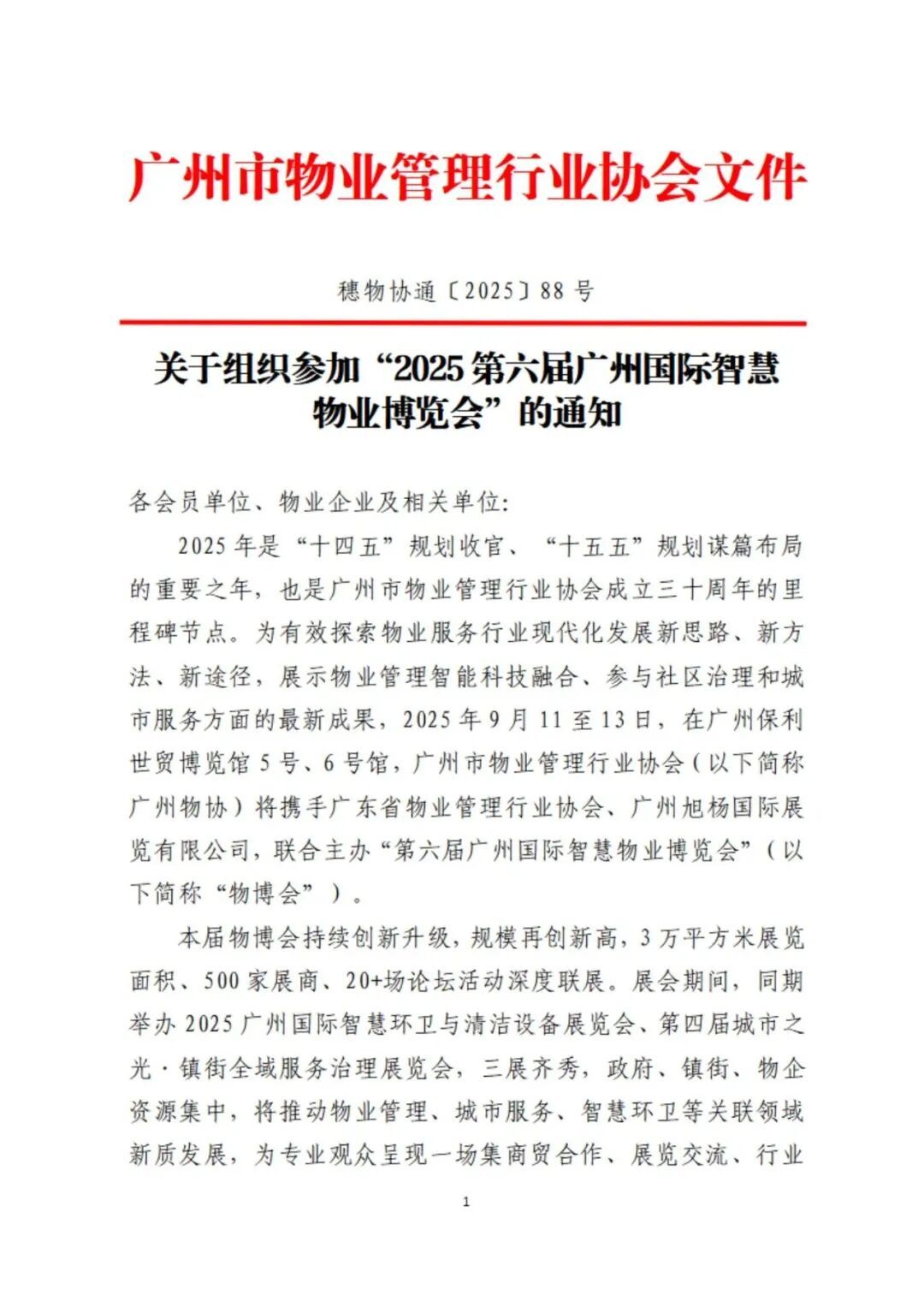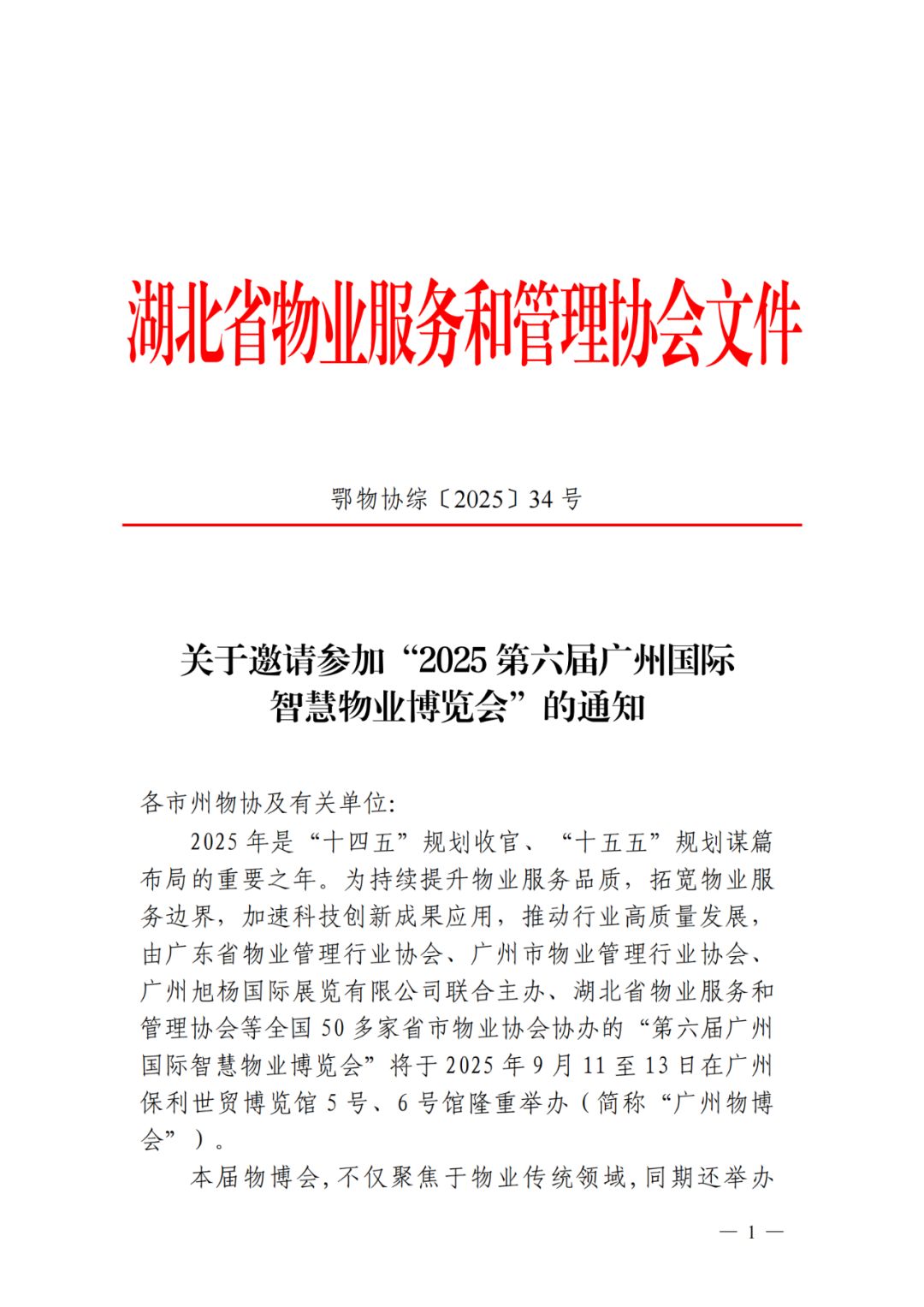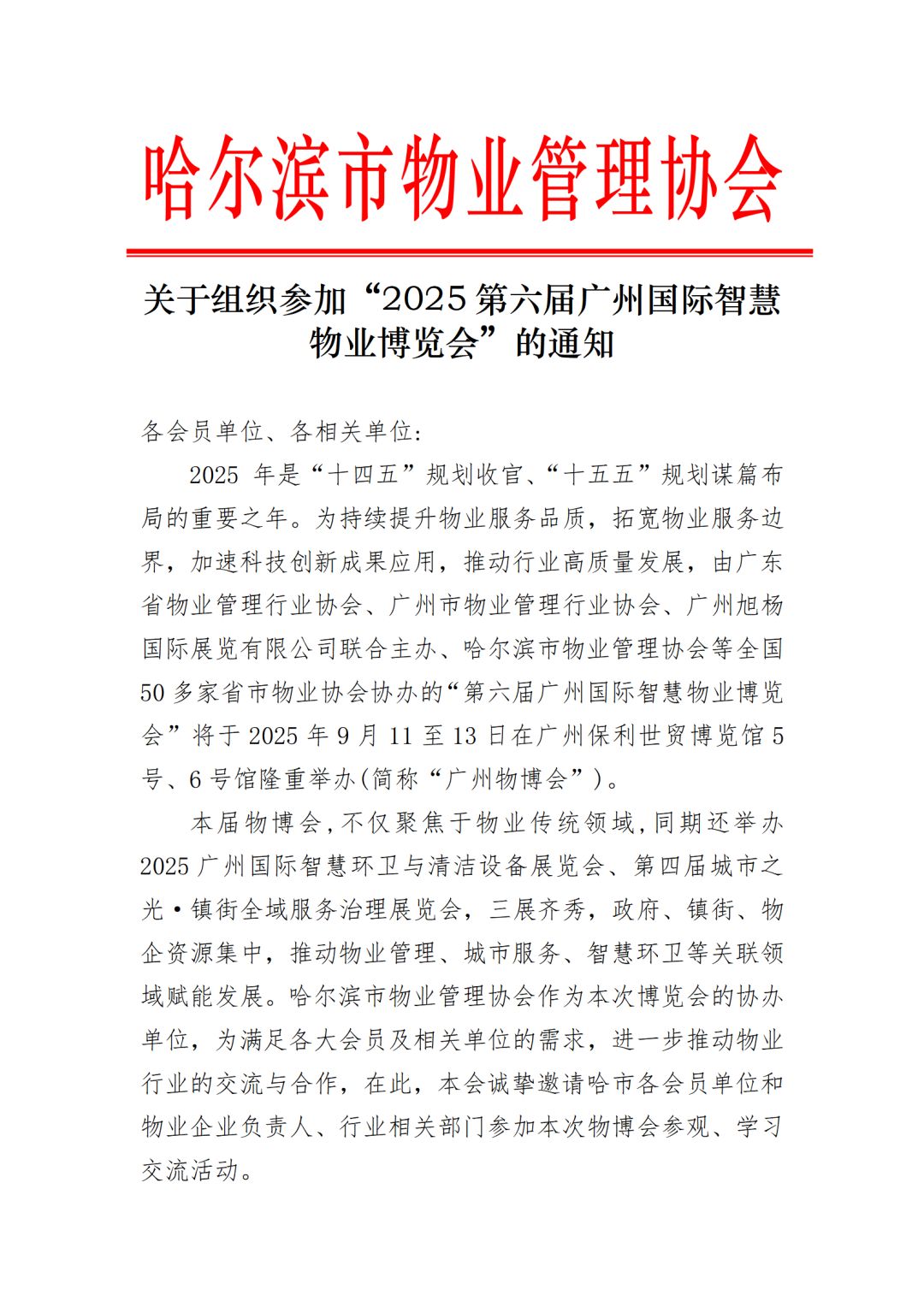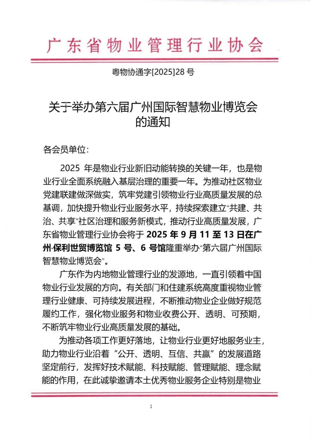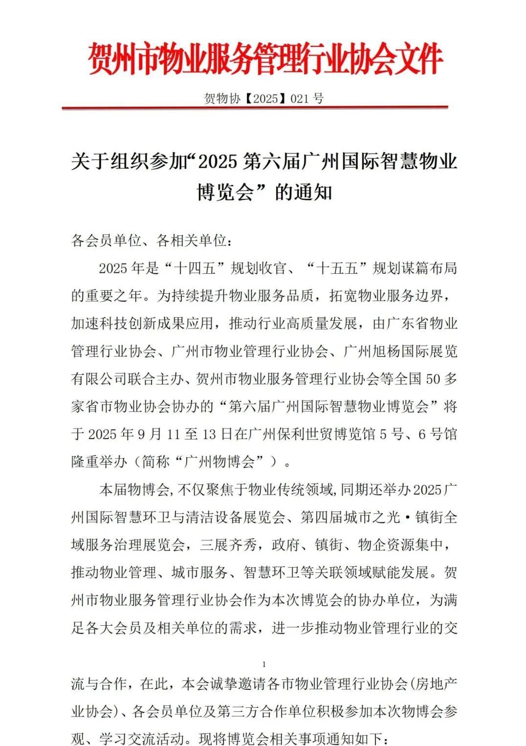 全国联动,各地省市级物业协会也积极发动组织参加2025第六届广州国际智慧物业博览会,号召会员单位、物业企业及上下游合作企业积极组团参观,大力支持办好本次物博会,促进行业交流合作,为行业发展开拓更广阔的平台!