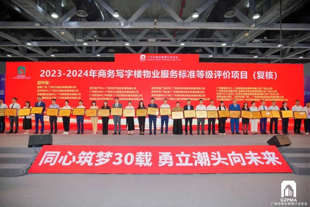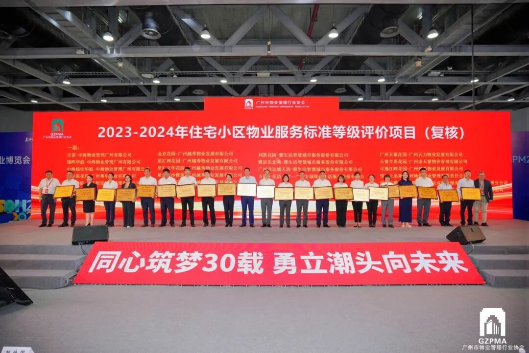 在本次物博会期间,广州市物业管理行业协会为雅生活华南区域颁发多项重要奖项,充分肯定其在物业服务领域的卓越表现。华南区域品质运营部总监黄丽梅荣获广州市物业管理行业协会建会30周年“育匠铸魂”专家称号;同时,利凯花园、雅居乐北苑、广州亚运城天韵荣获“广州市住宅小区一级服务标准”称号,广州雅居乐中心、广州空港国际中心则获评“广州市商务写字楼甲级服务标准”。这些荣誉集中展现了雅生活华南区域在多业态服务、专业人才建设与标准化运营方面的综合实力。