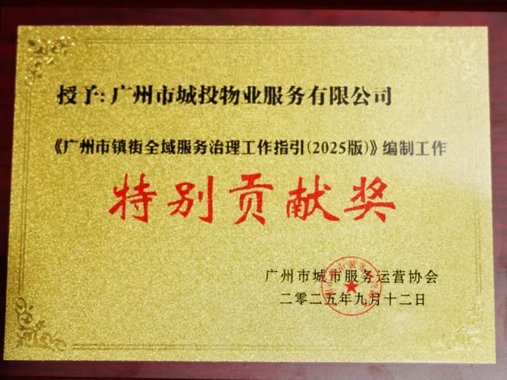 ●城投物业荣获《广州市镇街全域服务治理工作指引(2025版)》编制工作特别贡献奖