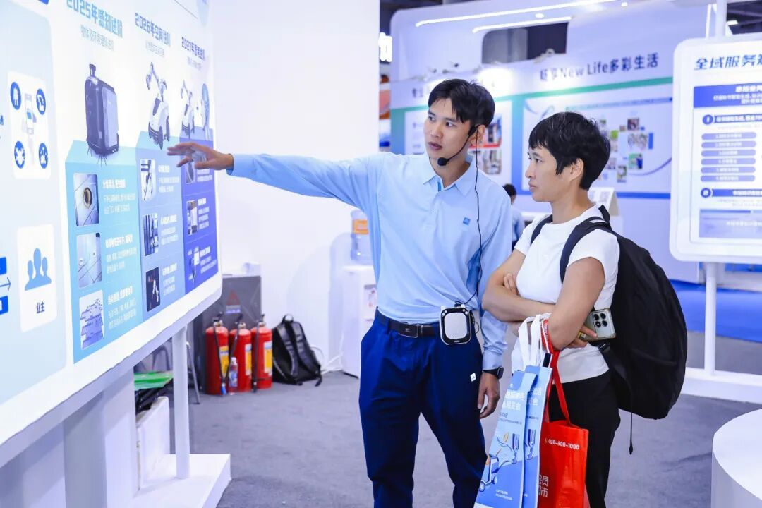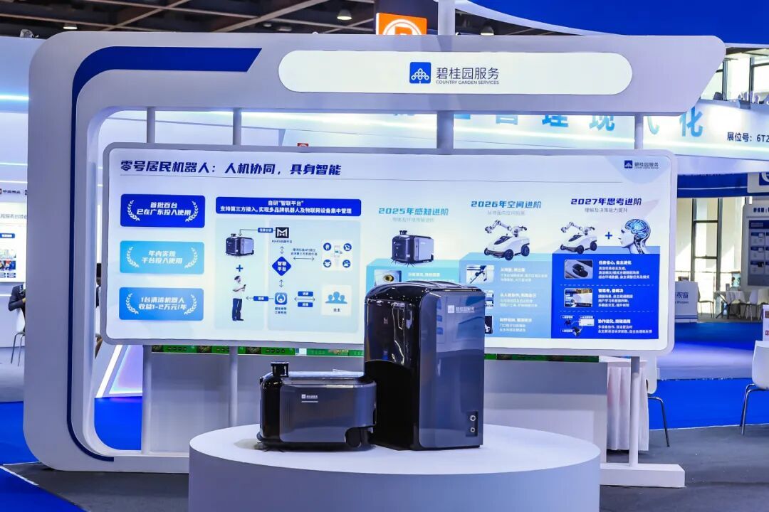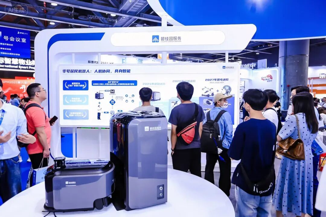 展会上尤为引人注目的是“零号居民”清洁机器人。据现场讲解员介绍,碧桂园服务首批百台清洁机器人已在广东投入使用,今年计划推广至千台规模。公司自研的智联平台支持第三方设备接入,可以实现多品牌机器人及物联网设备的集中管理。未来,它将进一步拓展功能边界——从地面延展至立面清洁,从基础收纳到环境自主整理,并可主动识别、处理与反馈业主清洁需求,构建真正意义上的人机协同、智能共生的社区新形态。
